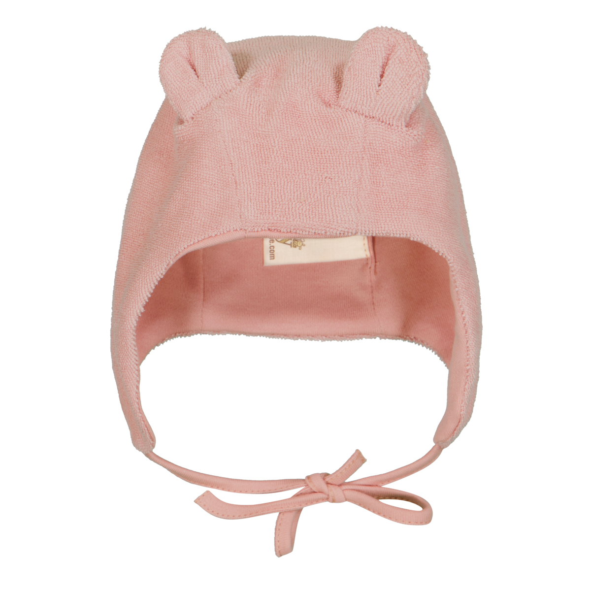 This organic cotton baby hat with bear ears in pink frotte is perfect for keeping your baby warm and cozy in cooler weather. The hat is made from soft, high-quality GOTS certified cotton, making it gentle on your baby's delicate skin. The playful design of the bear ears adds a fun touch to the hat, while the pink frotte fabric adds a cozy feel. With this hat, your little one will stay snug and stylish all season long.