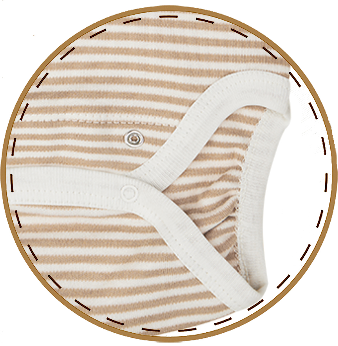 • Press-stud fastening between legs to make nappy changing easy.