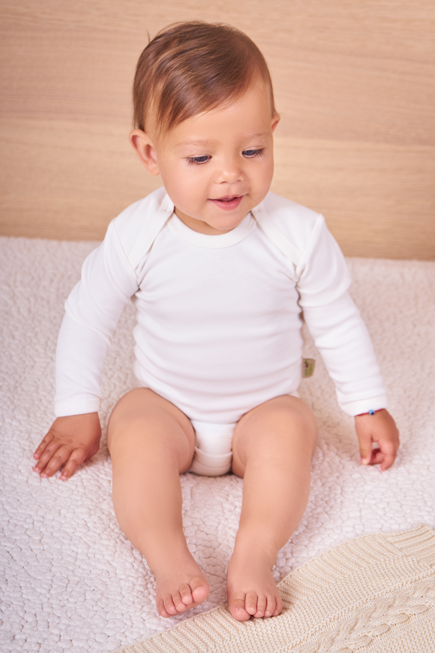 Baby bodysuits with envelope opening on shoulder - ecru color