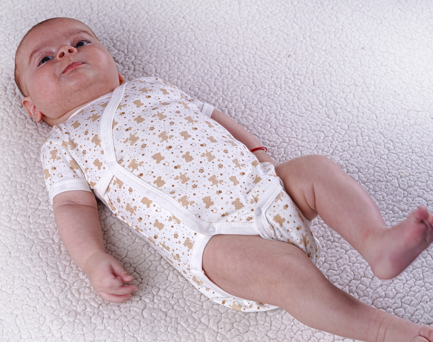 Baby bodysuits with short sleeves wrap style - ecru color with brown print