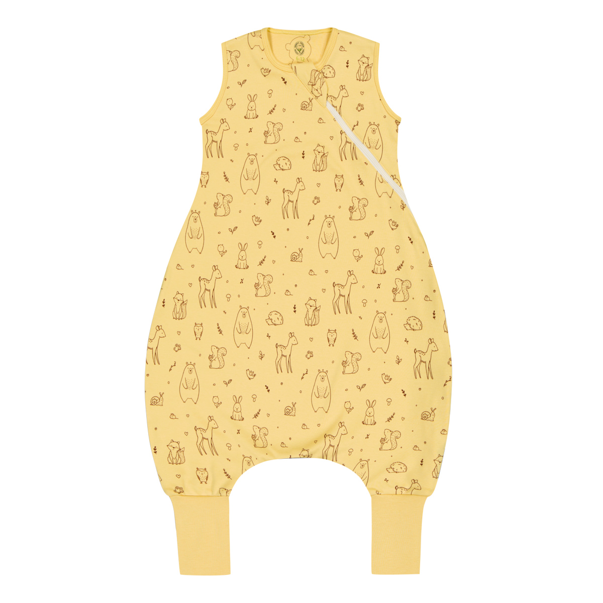 The Bio Baby Sleeping Bag with Feet in animal forest print is perfect for keeping your baby cozy and comfortable during sleep time. The innovative feet covers allow your child to walk around while keeping their toes warm and toasty, and the extra-wide and spacious design provides plenty of room for active babies and toddlers to move their legs. The sleeping bag is made of certified organic cotton, making it gentle on your baby's skin and safe for allergic children. The two-way zipper with scratch protection prevents skin irritation at the neck, while the extra-long running zipper makes diaper changes easy while your baby is sleeping. The yellow animal forest print adds a touch of fun to your baby's bedtime routine.