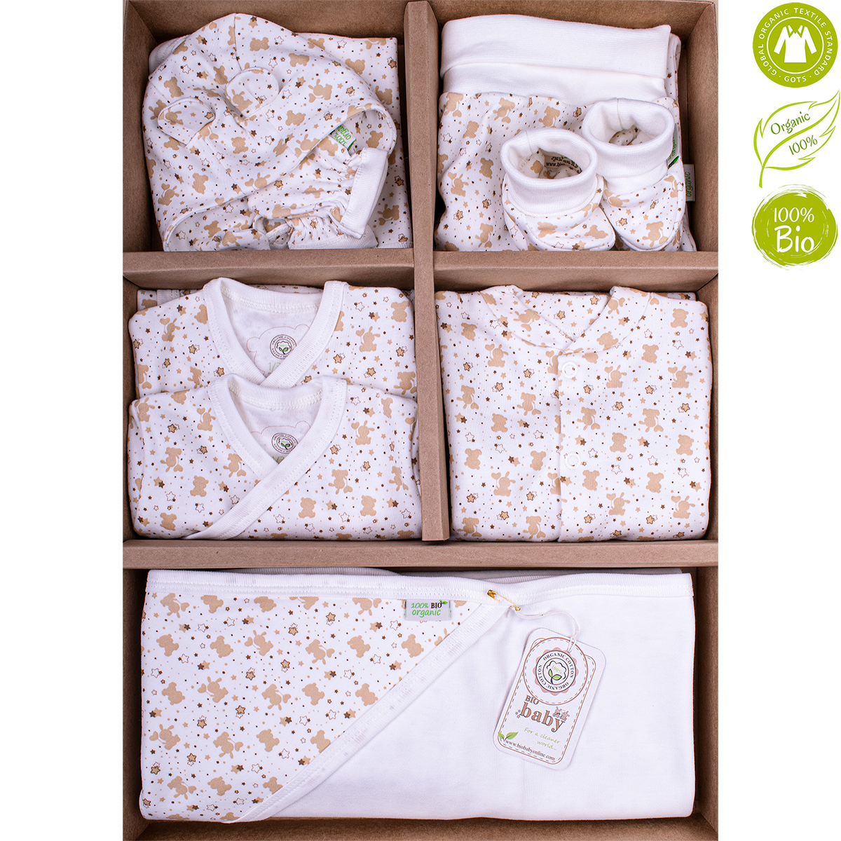 Bio Baby Organic Newborn gift set - 9 pcs in soft brown print