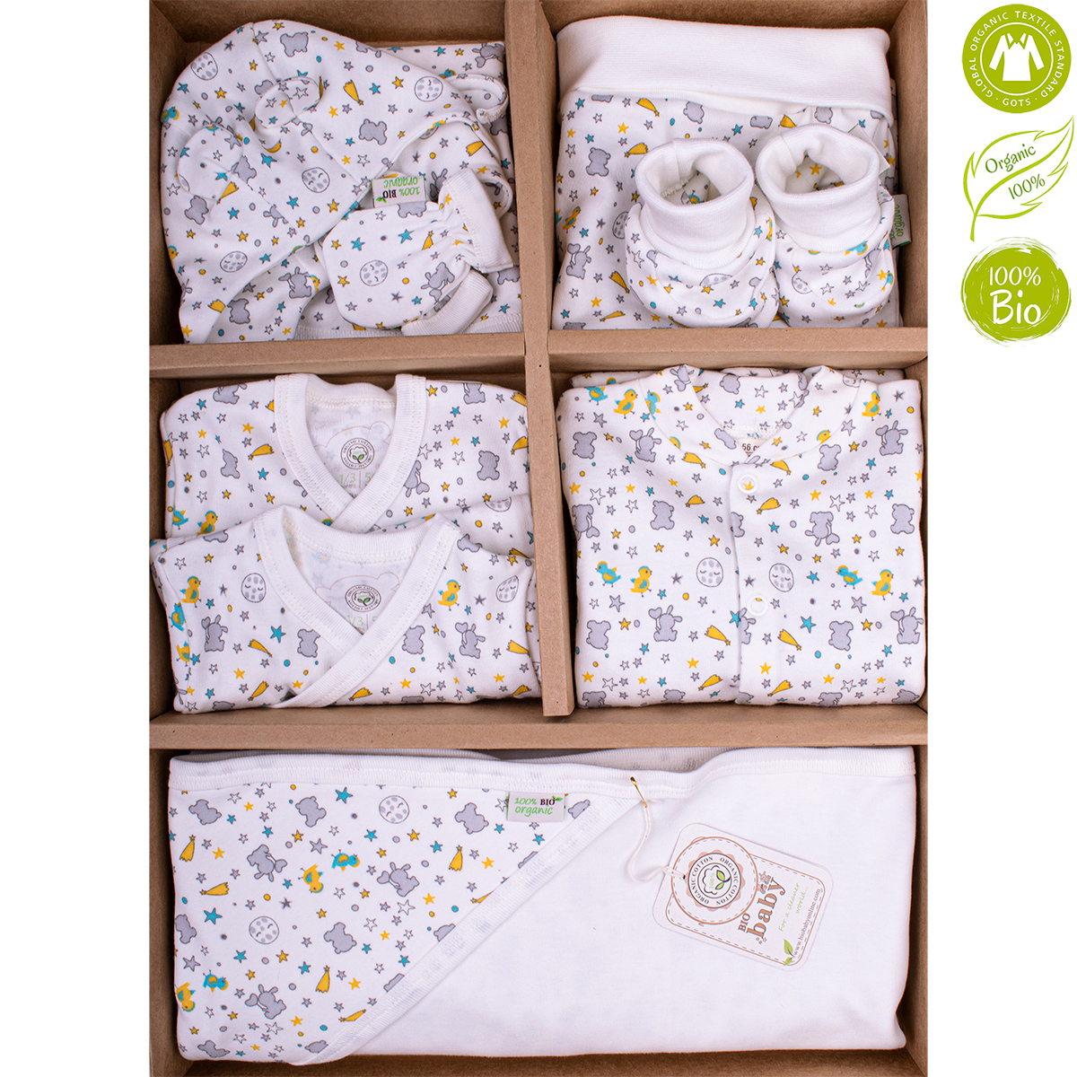 Bio Baby Organic Newborn gift set - 9 pcs in soft ecru print