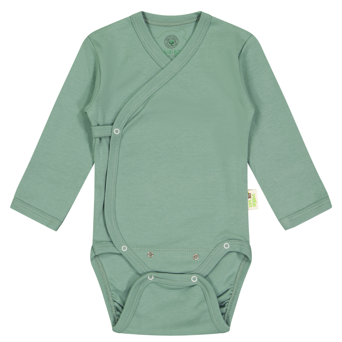 Welcome the new arrival in style with this beautiful Organic Cotton Baby Gift Set from Bio Baby. The set includes a wrap style bodysuit and footed pants, both made from soft and comfortable GOTS certified organic cotton. This makes it safe and gentle on your baby's delicate skin. The press-stud fastening between legs of the bodysuit makes nappy changing a breeze, while the double press-stud at the bottom allows you to adjust the size of the bodysuit as your baby grows. The lovely natural green color and cozy fit of this gift set make it the perfect present for any new parent.