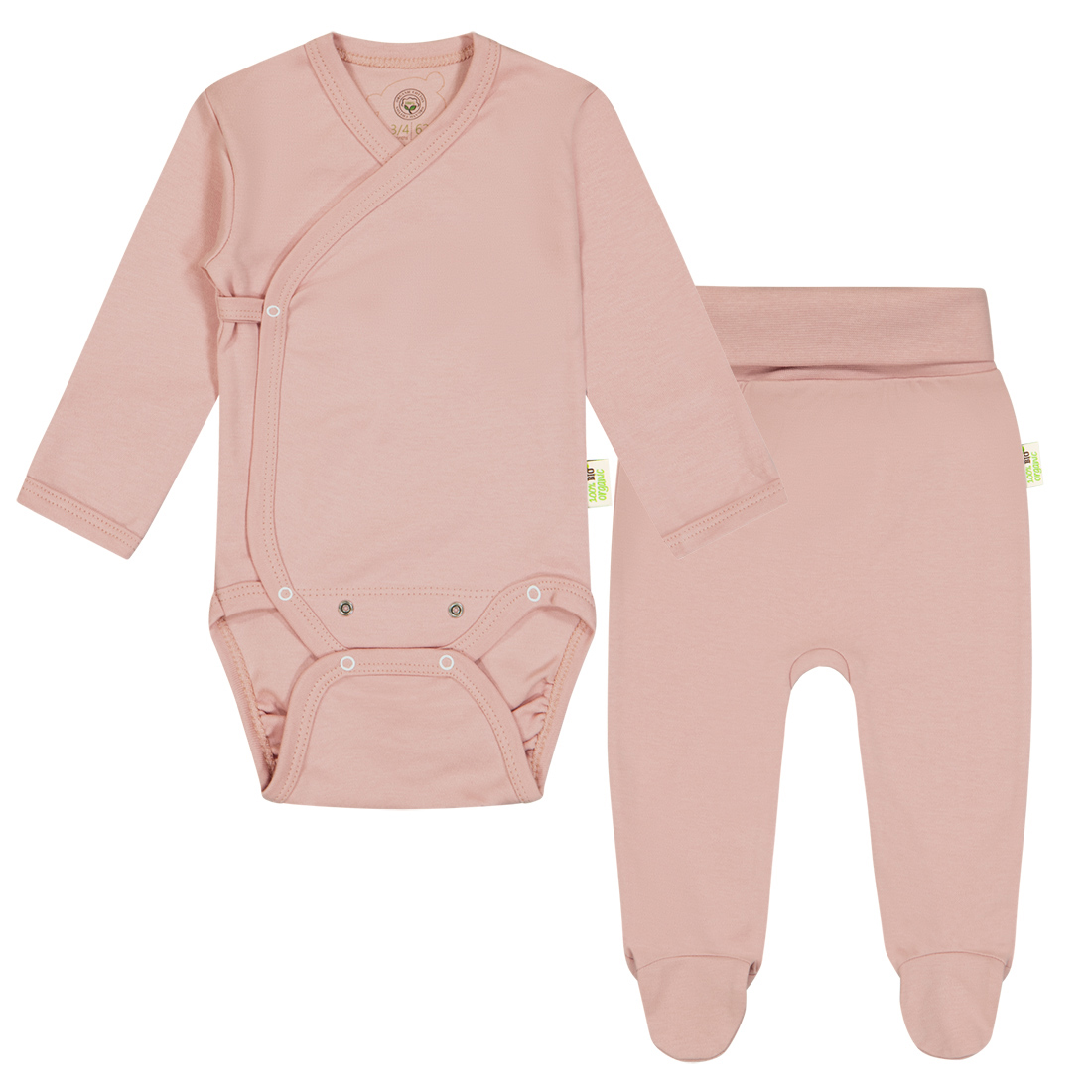 Welcome the new arrival in style with this beautiful Organic Cotton Baby Gift Set from Bio Baby. The set includes a wrap style bodysuit and footed pants, both made from soft and comfortable GOTS certified organic cotton. This makes it safe and gentle on your baby's delicate skin. The press-stud fastening between legs of the bodysuit makes nappy changing a breeze, while the double press-stud at the bottom allows you to adjust the size of the bodysuit as your baby grows. The lovely pink color and cozy fit of this gift set make it the perfect present for any new parent.