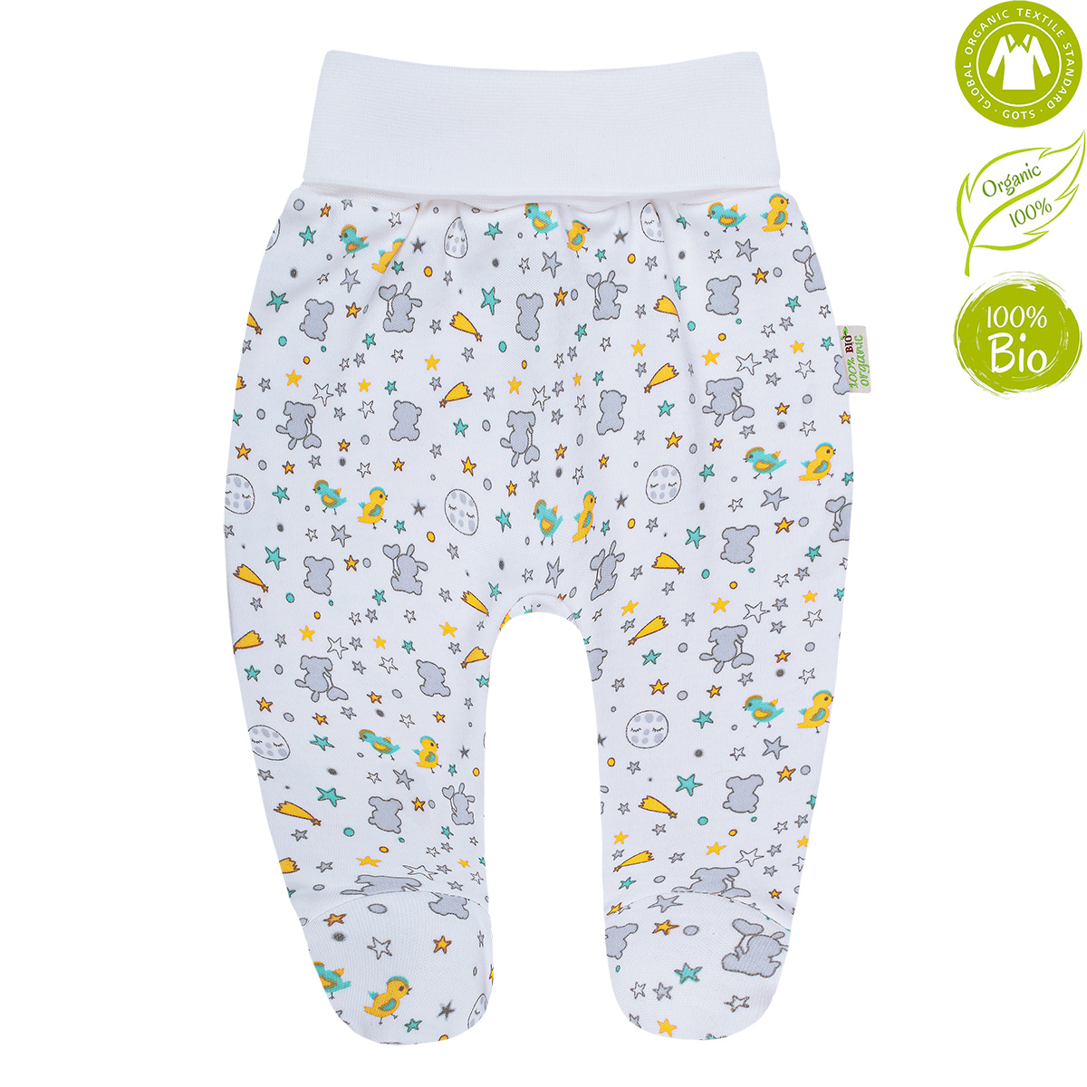 • Made of 100% certified organic cotton, this baby footed pants is gentle for babies' soft skin.
