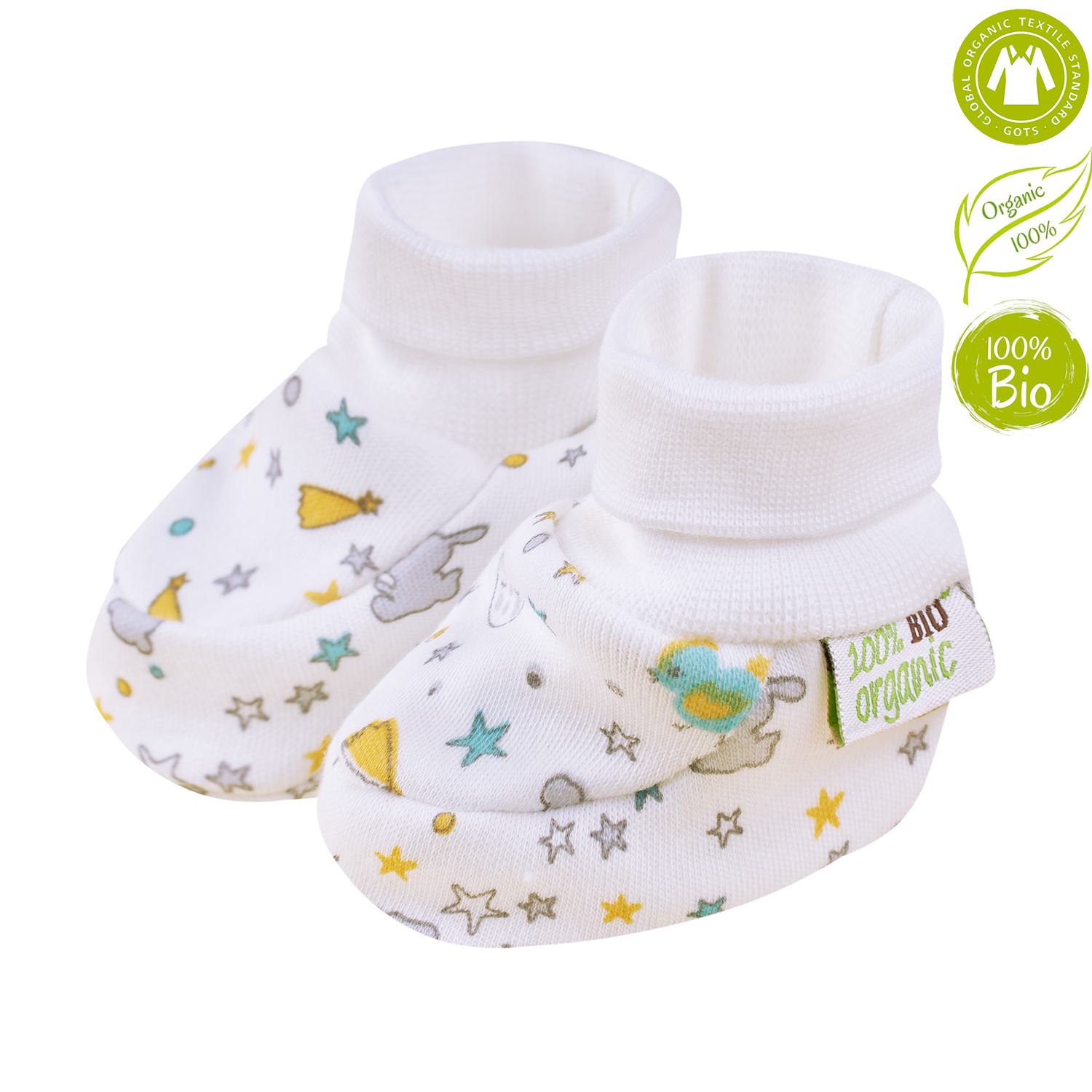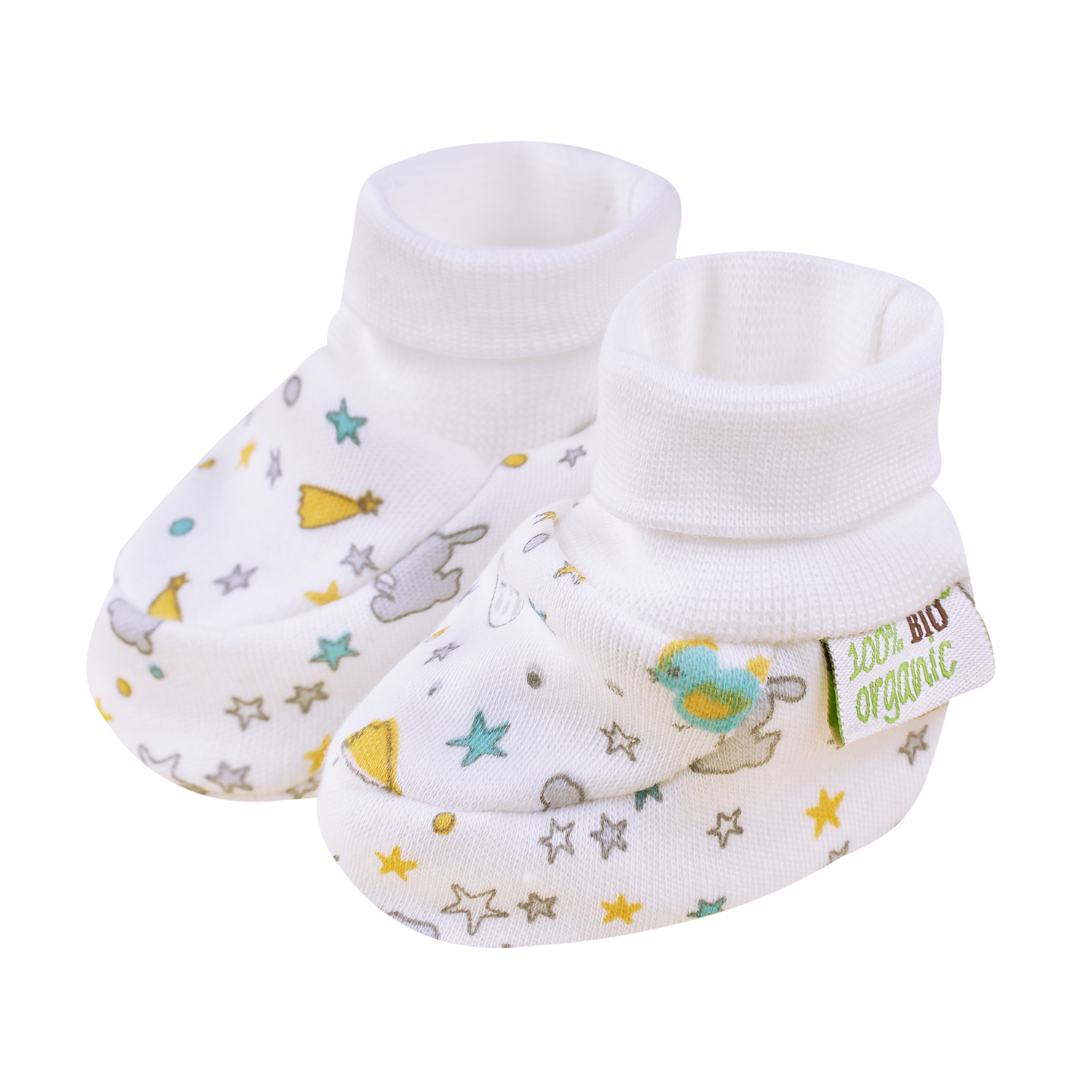 Ultra comfortable for baby booties made from certified organic cotton. The super soft fabric feels perfect on baby skin