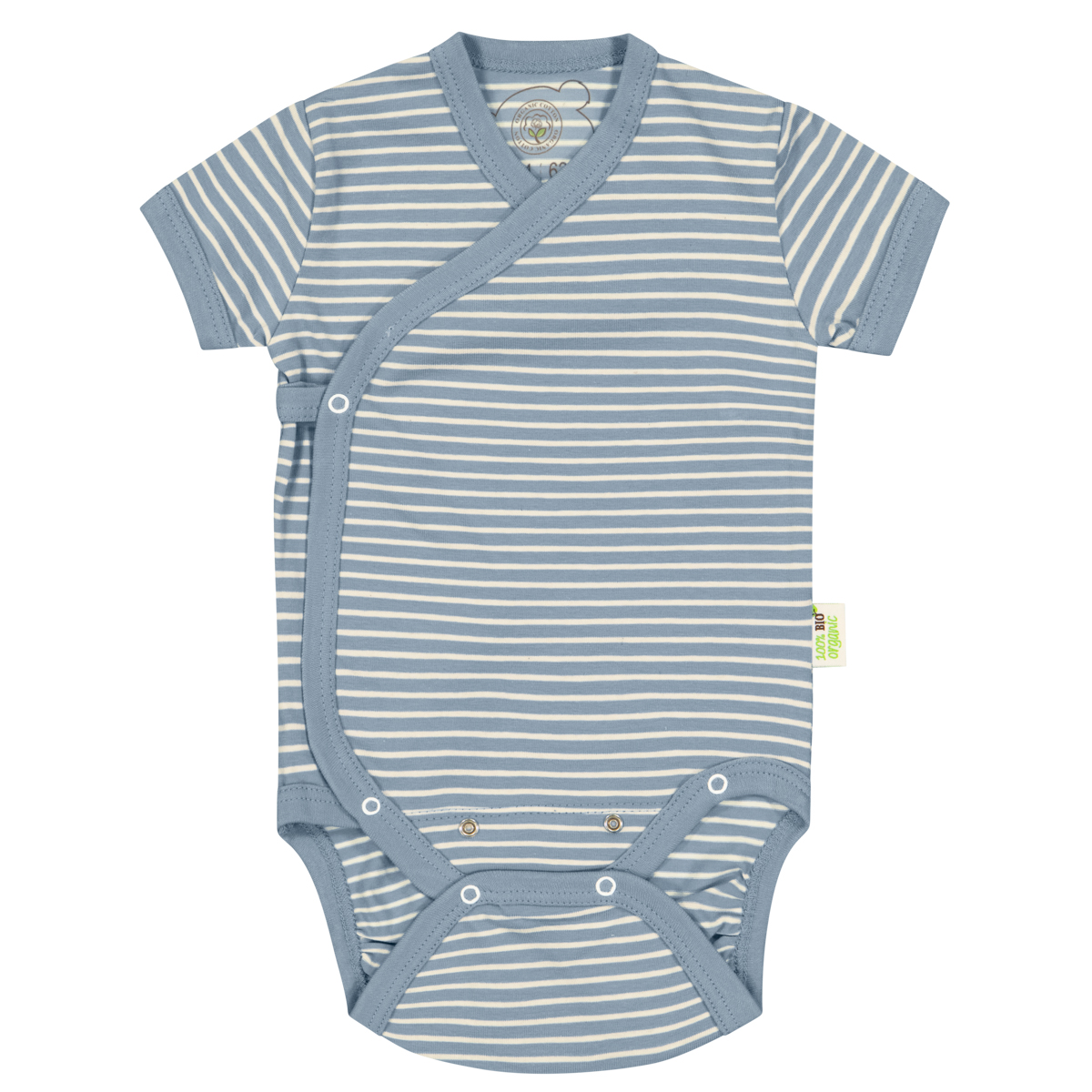 Short Sleeve Wrap Bodysuit - Pastel Blue Striped